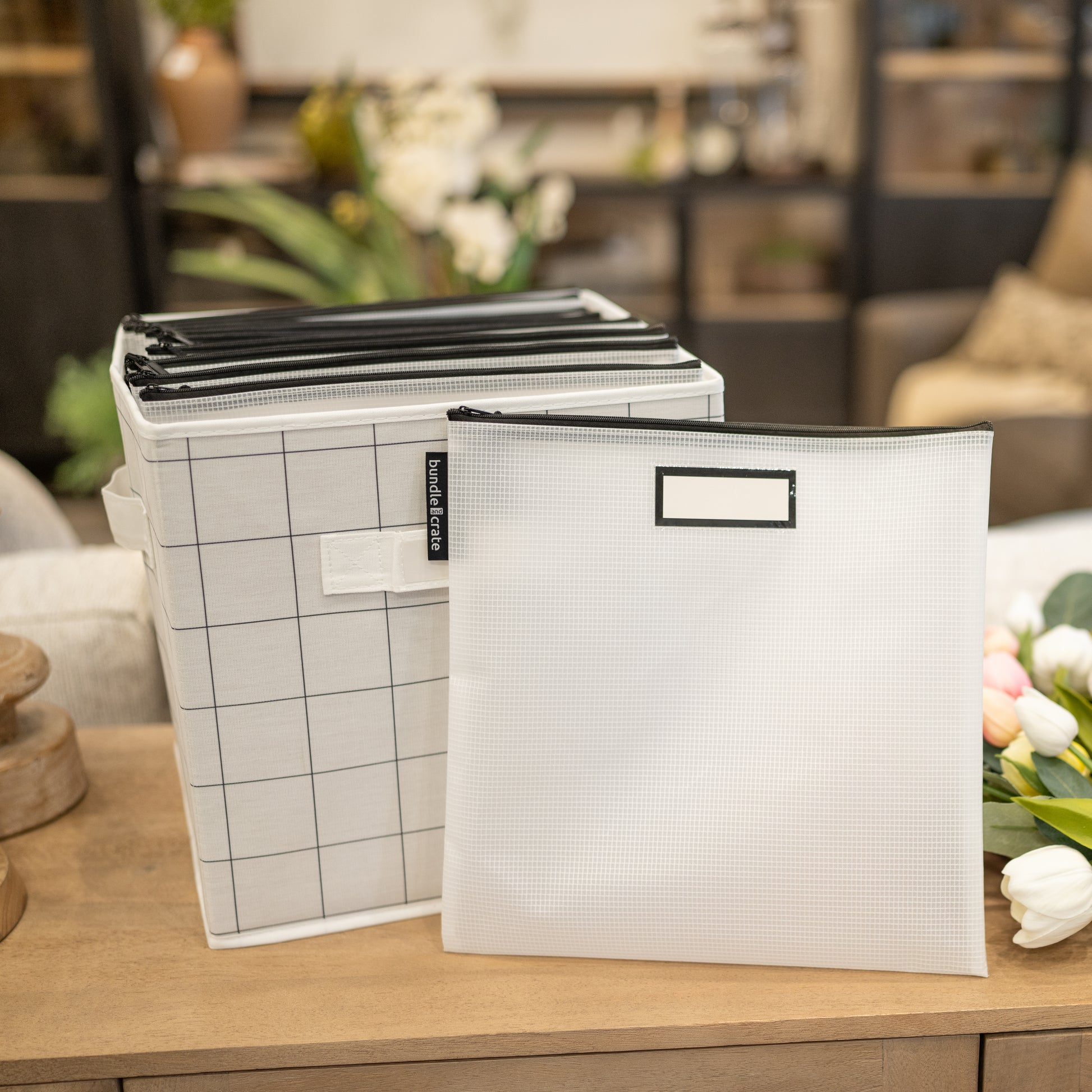 Keep your stuff organized and ready to grab 'n go! The OG Sleek organizing zipper pouches are designed with a flat label holder to easily slip inside 13" storage bins, making it your new best friend for decluttering. Plus, you'll always know what belongs in the pouch if you find the contents of the pouch have been emptied. Perfect for organizing paper, board games, toys, crafts, and office supplies. Lightweight and easy to carry, these pouches transform chaos into calm, one bin at a time.
